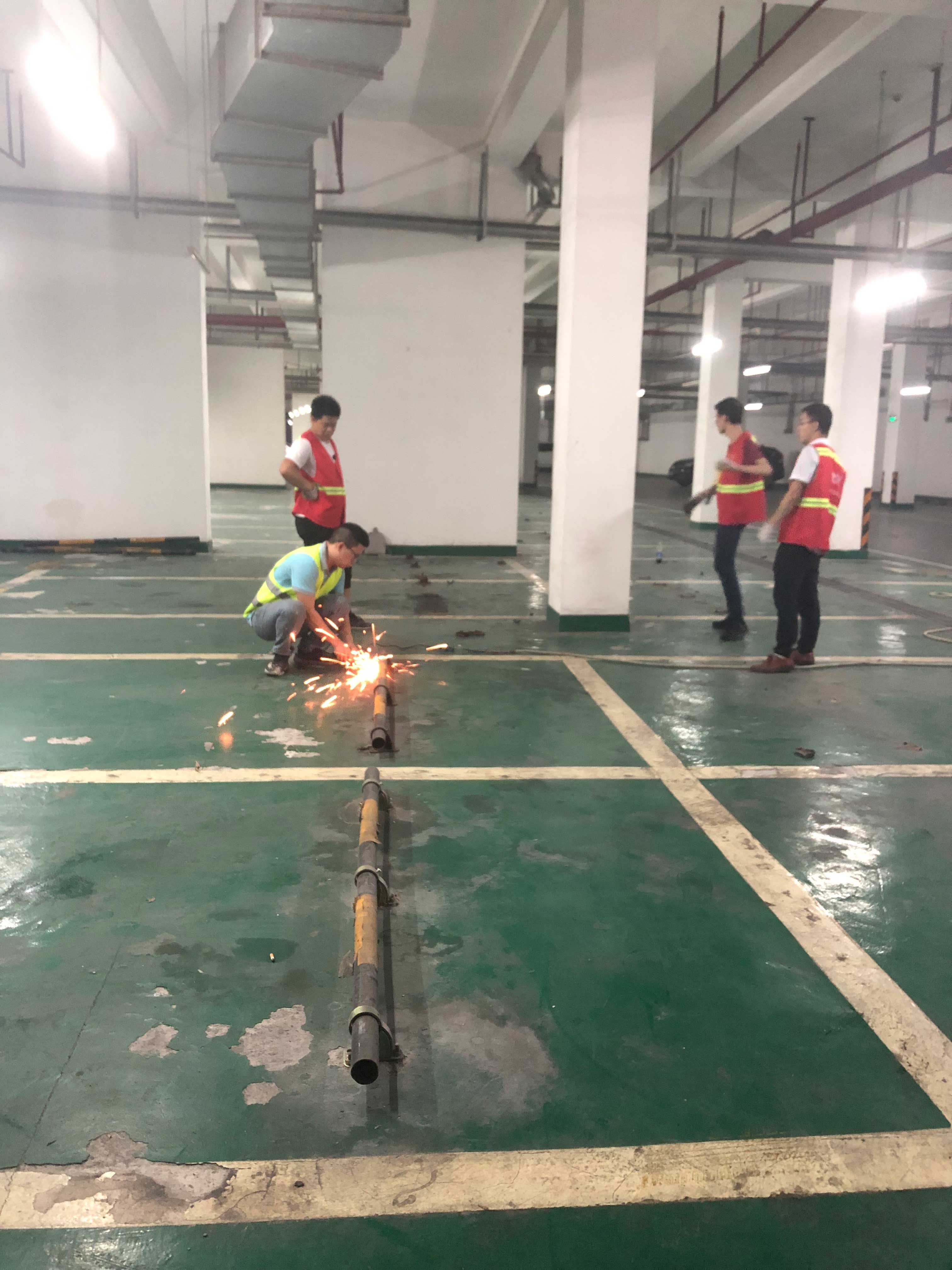 3、用塑胶扫把来回往复不停刷扫,保持地面浸泡 2 小时(视地坪实际情况确定浸泡时间及进行后续处理工序时间)